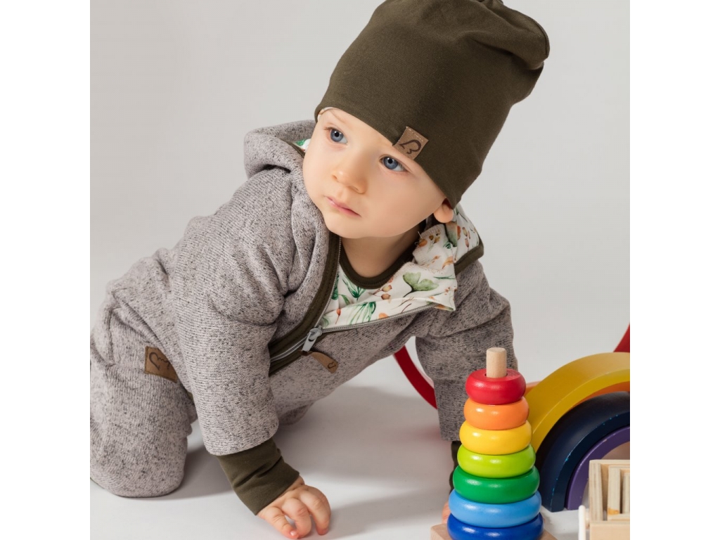 A aby bol váš drobec komplet celý zladený, tento pohodlný outfit môžete doplniť aj bodyčkom a tiež skvelou dvojvrstvovou bavlnenou čiapkou, ktorá je dokonca obojstranná. Z jednej strany decentná jednofarebná, z opačnej strany je dizajnová látka, ktorá je použitá aj ako podšívka v kapucni overalu.