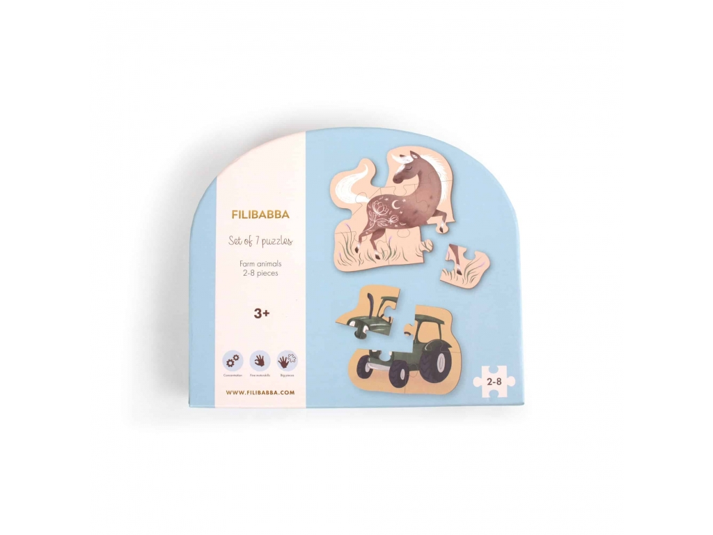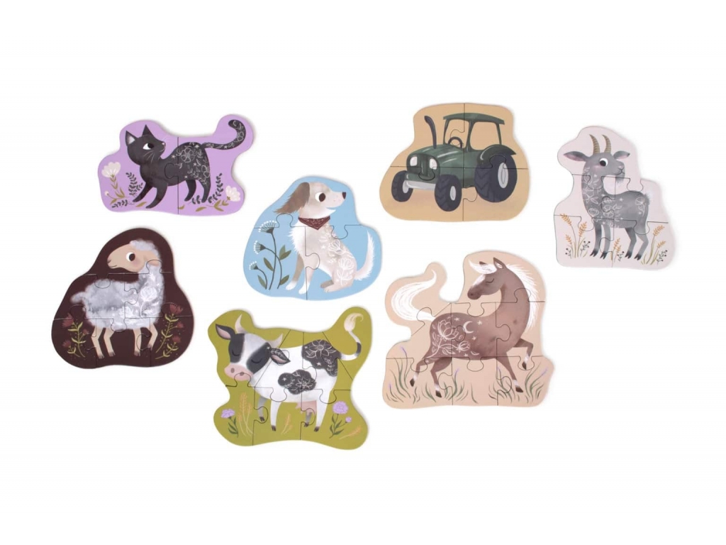 Sada 7ks puzzlí s motívom farmárskych zvierat, ideálne na precvičovanie jemnej motoriky.