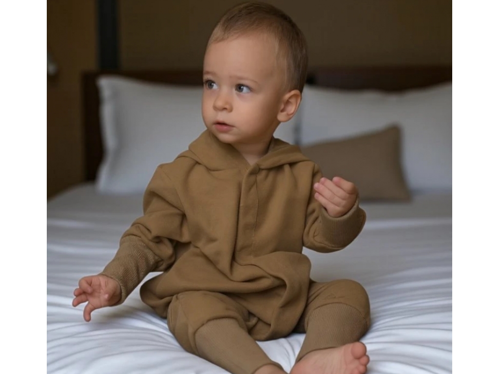 Teplákový jesenný overal v oversize strihu, do ktorého sa zmestí jedna až dve vrstvy oblečenia. Dlhé patenty umožňujú zakryť nožičky menších bábätiek alebo ponechať otvorené pre staršie deti. Magnetické zapínanie zjednodušuje obliekanie a neutrálny odtieň robí overal univerzálnym. Odporúčame kúpiť o jednu veľkosť väčší pre lepšie prispôsobenie.